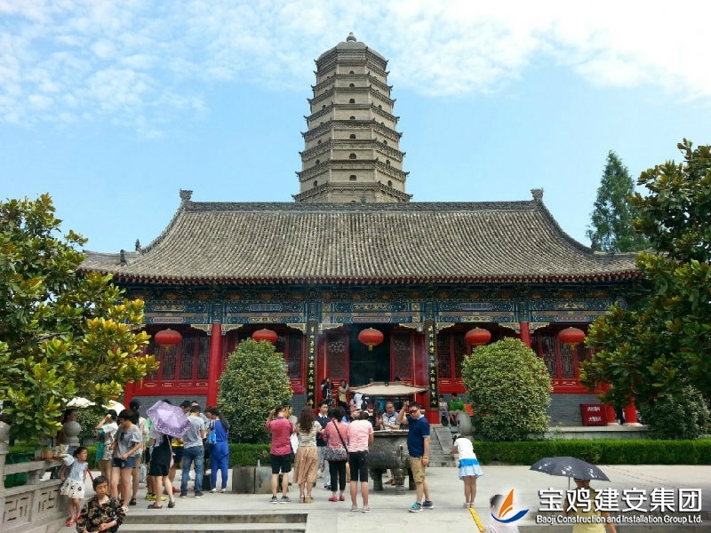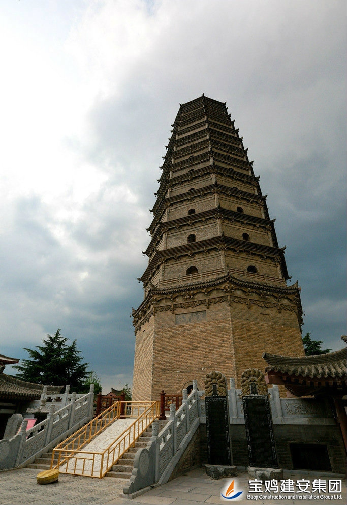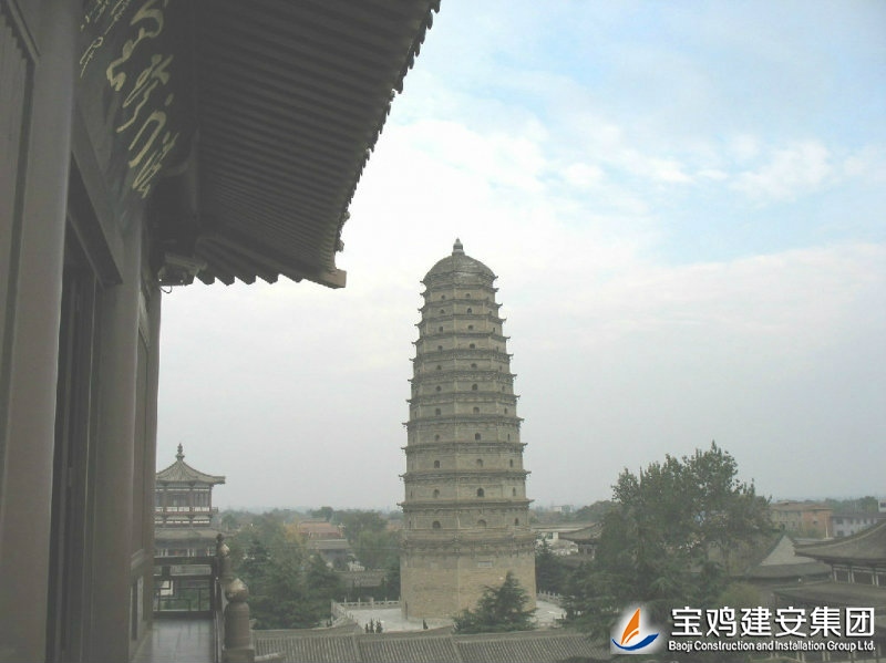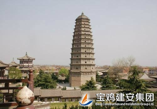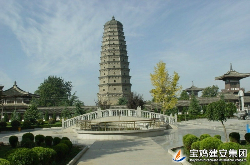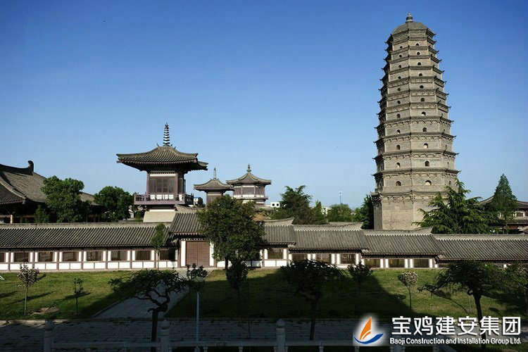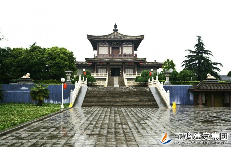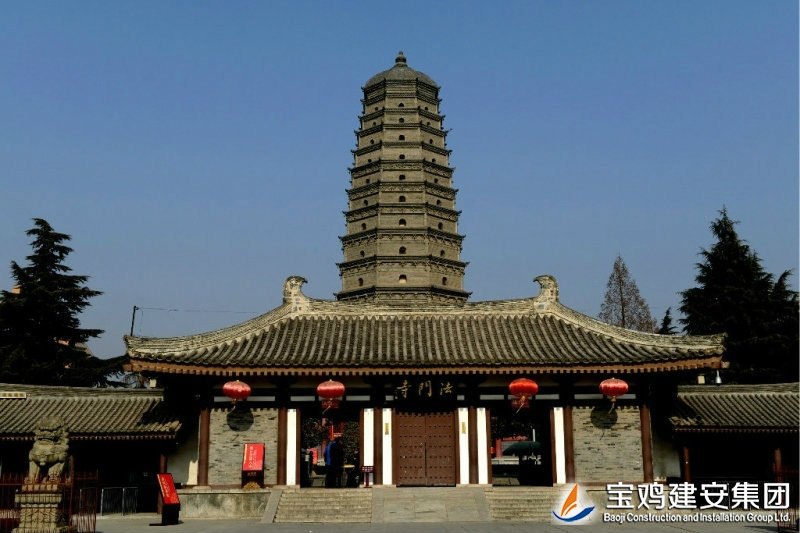 The reconstruction project of Famen Temple is constructed by the People's Government of Shaanxi Province. The real pagoda is restored on the original site. The project of Famen Temple Museum is constructed for the purpose of collection and exhibition of the rare treasures unearthed from the underground palace of Tower of Famen Temple. The newly built Famen Temple Museum project includes nine individual projects such as Treasure Pavilion and Multi-function Hall etc. The architectural form is Tang-style architecture, and the modern communications, heating, automatic alarm, fire fighting and other facilities are built internally. The shape of real pagoda is the complete restore type of pagoda in the Ming Dynasty. Its internal part is the binocular cast reinforced concrete structure with the steel staircase and a total of 13 floors. The building area is of ??1699 square meters.