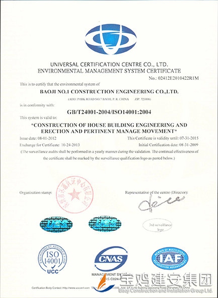 Certificate of Conformity to Environmental Management System