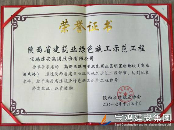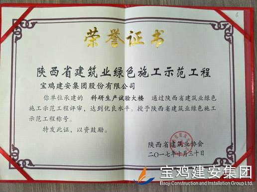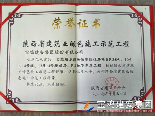 2018年1月26日在西安召開了陜西省建筑業(yè)協(xié)會第六屆二次理事會議,我公司承建的科研生產(chǎn)試驗大樓、寶雞蟠龍新居SF05標段,高新五路明星佳苑、新建路市場改造項目(民豐國際)、中聯(lián)國際廣場項目,在2017年度綠色施工評審過程中,達到優(yōu)良水平,被授予陜西省建筑業(yè)綠色施工示范工程稱號。 此次榮譽的獲得離不開公司各職能部室的指導與項目部的辛勤努力,項目部能緊跟建筑行業(yè)發(fā)展的大方向,不斷加強綠色施工過程管理的學習,在施工過程中圍繞著“四節(jié)一環(huán)?!崩砟?,堅持走節(jié)能降耗,增效降本,可持續(xù)發(fā)展的施工道路,最終取得了可喜的成績。 公司綠色施工整體水平近年來得到顯著提高,希望各項目部在2018年的施工過程中,以文明施工,綠色施工標準嚴格要求自己,力爭在施工管理方面取得更高的成績。