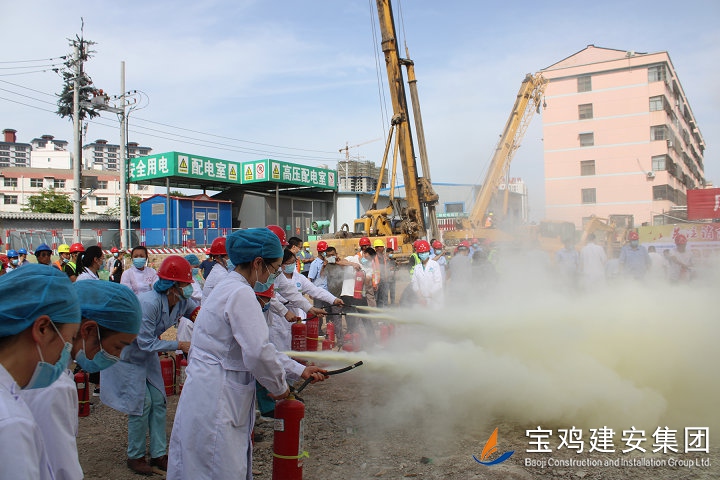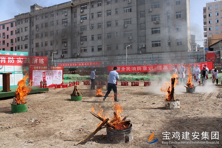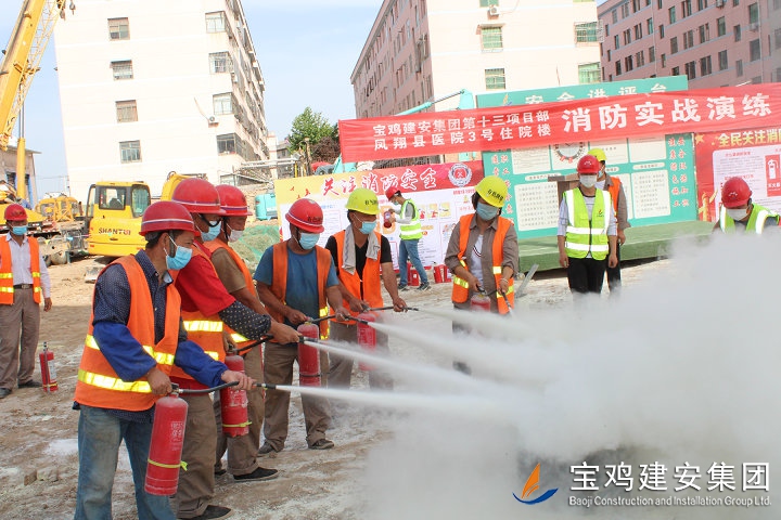 為確保此次消防實戰(zhàn)演練工作順利實施,項目部在活動開展前后開展了大量籌備保障工作:一是6月1日上午在鳳翔縣3號住院樓工地會議室召開了現(xiàn)場消防演練專項會議,進行了應(yīng)急演練工作的指示和傳達;二是6月2日上午10點,消防物資準備組對倉庫消防器材和物資進行檢查,并上報消防演練指揮中心;三是6月2日下午消防實戰(zhàn)演練過程中,配合消防人員快速組織疏散現(xiàn)場工人并及時撲滅大火,確保整個演練過程有條不紊進行,活動達到了預(yù)期效果。通過此次直觀、規(guī)范的火災(zāi)實戰(zhàn)演練,加強了所有觀摩及參加人員消防安全四個能力建設(shè):消防宣傳教育培訓能力、檢查消除火災(zāi)隱患能力、組織撲救初起火災(zāi)能力和組織人員疏散逃生能力。