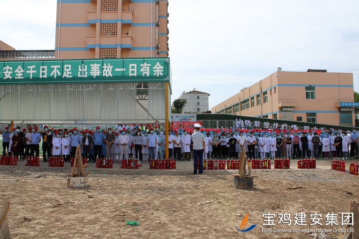 鳳翔縣醫(yī)院3號住院樓工程是全市重點建設(shè)項目之一,也是省、市、縣各級領(lǐng)導(dǎo)密切關(guān)注的民生工程。本項目建設(shè)地址位于縣醫(yī)院內(nèi),占地面積2100平方米,總建筑面積為45663.98平方米,框架結(jié)構(gòu)二十六層(其中地下兩層,地上二十四層),建筑高度97.1米,設(shè)計使用年限為50年,概算總投資1.98億元。項目自開工以來,受到鳳翔縣醫(yī)院領(lǐng)導(dǎo)高度重視和大力支持。通過此次消防實戰(zhàn)演練,項目部將更為嚴格的開展工地消防安全管理工作,重點做好以下三項工作: