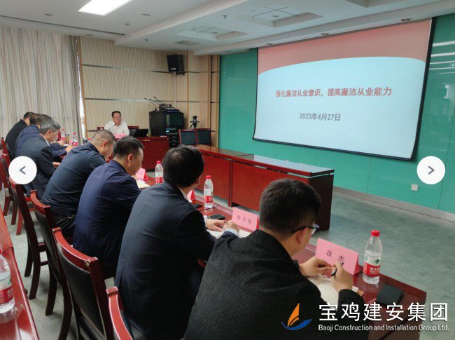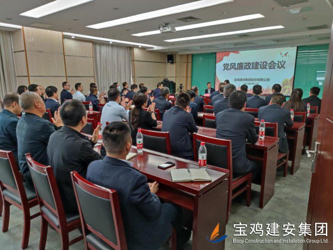 為認(rèn)真貫徹落實(shí)習(xí)近平總書記關(guān)于全面從嚴(yán)治黨重要指示批示精神,深刻汲取郭振山、頓小建嚴(yán)重違紀(jì)違法問題教訓(xùn),切實(shí)維護(hù)風(fēng)清氣正的政治生態(tài),全面建設(shè)廉政黨風(fēng),寶雞建安集團(tuán)公司黨委于4月27日下午在22樓第三會議室舉辦了黨風(fēng)廉政建設(shè)工作會議。