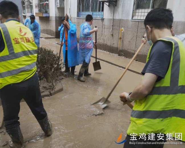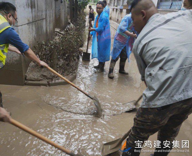 災(zāi)情來臨,義無反顧;災(zāi)后清淤,勇挑重?fù)?dān)?!昂樗淹?,我們不退”,寶雞建安集團(tuán)洪災(zāi)重建小分隊(duì)逆行風(fēng)雨中,以實(shí)際行動踐行錚錚誓言,在重建家園的大愛隊(duì)伍中,為渭濱區(qū)一方群眾筑牢了一道安全堤壩!