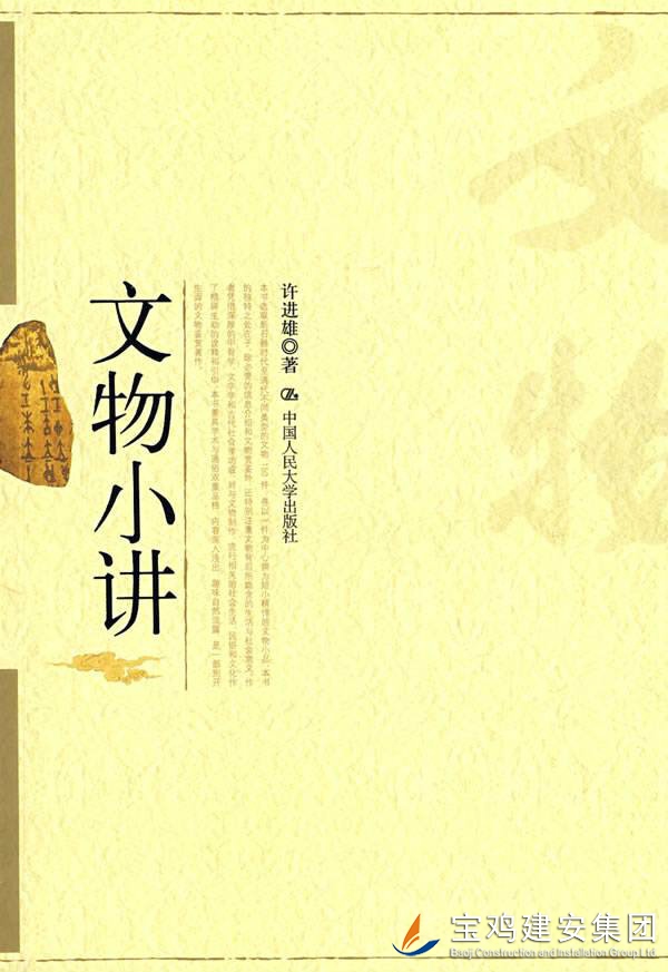 公司開(kāi)展“書(shū)香企業(yè)”讀書(shū)月活動(dòng),提供了大量?jī)?yōu)秀的各類(lèi)書(shū)籍供員工閱讀,我有緣拜讀到一本臺(tái)灣著名學(xué)者許進(jìn)雄先生的作品《文物小講》。 這本書(shū)以通俗易懂而不失學(xué)術(shù)的小品文方式,介紹了150件中國(guó)文物。文物歷史橫跨新石器時(shí)代至清代,文體精悍短小,詮釋精辟生動(dòng),讓人閱讀時(shí)仿佛置身博物館中游覽,不知不覺(jué)引人入勝。