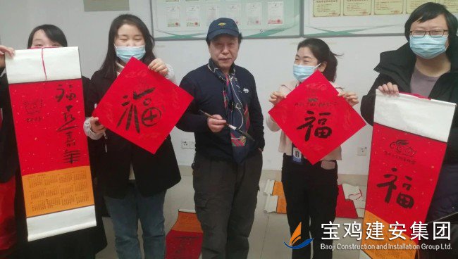 “虎嘯傳捷報,玉兔迎春暉”,在癸卯新春即將到來之際,公司工會特邀我市著名書畫家、篆刻家、寶雞印社名譽社長、寶雞市直機關書畫協(xié)會副會長兼秘書長張寶文老師蒞臨建安大廈,為廣大員工精心繪制生肖畫、書寫新春聯(lián),將春節(jié)的喜慶與祥和及時送到了廣大員工的身邊...... “虎嘯傳捷報,玉兔迎春暉”,在癸卯新春即將到來之際,公司工會特邀我市著名書畫家、篆刻家、寶雞印社名譽社長、寶雞市直機關書畫協(xié)會副會長兼秘書長張寶文老師蒞臨建安大廈,為廣大員工精心繪制生肖畫、書寫新春聯(lián),將春節(jié)的喜慶與祥和及時送到了廣大員工的身邊...... “萌萌噠”的玉兔挑著燈籠歡笑著,蹦跳著,燈籠上系著鞭炮、掛著糖葫蘆、閃著福星,飄逸灑脫的福字和“諸事和順、兔年幸?!钡募檎Z與英語文“Happy new year”“Best wishes”中西合璧、巧妙結合,將辭舊迎新的節(jié)慶氣氛濃縮在一張張中國紅的斗方宣紙與節(jié)日掛歷上,濃濃的年味撲面而來,帶給大家無盡的喜悅與祝?!?/div>